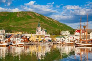 Pequeno-almoço. Durante a manhã, realiza um passeio inesquecível de observação de baleias, uma jóia das experiências islandesas. Saída do Porto Antigo de Reykjavík e a navegação decorre durante algumas horas pelas águas cénicas e ricas em nutrientes da Islândia, onde terá a oportunidade de avistar majestosas baleias, como as gigantes jubartes, golfinhos brincalhões e botos no seu habitat natural. Com guias experientes a bordo, que são especialistas em vida marinha, aprenda mais sobre a vida marinha local e recebe dicas valiosas para avistar baleias-minke e jubartes, entre outras criaturas marinhas que prosperam nestas águas frias. Almoço em restaurante local. De tarde, realiza a visita pela bela cidade de Reykjavík com o seu guia. A capital da Islândia, uma verdadeira jóia do Atlântico Norte, surpreende com as suas pitorescas casas costeiras em cores vibrantes, boutiques exclusivas e lembranças da história viking do país em cada esquina. Com apenas 215.000 habitantes, Reykjavík é pacífica, pitoresca, histórica e artística, oferecendo um ambiente relaxado e acolhedor. Passagem pela icónica Igreja Hallgrímskirkja, no coração da cidade, cuja arquitetura esplêndida é inspirada nas colunas de basalto islandesas. Reykjavík é um paraíso de arquitetura e elementos culturais impressionantes. Sinta as profundas raízes da história viking misturadas com a energia contemporânea da criatividade moderna. Jantar e alojamento.