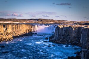 Pequeno-almoço. Passeio pelo Círculo Dourado, uma jóia imperdível das rotas turísticas islandesas, onde se terá a oportunidade de conhecer três das atrações mais famosas e impressionantes da Islândia: o Parque Nacional de Þingvellir, a área geotérmica de Geysir e a cascata Gullfoss. O Parque Nacional de Þingvellir, classificado como Património Mundial da UNESCO, situa-se exatamente na fronteira entre as placas tectónicas da América do Norte e da Eurásia. Os efeitos do afastamento dos continentes são claramente visíveis na paisagem, que oferece uma vista panorâmica única da falha. Este é também um local de grande importância histórica, pois foi aqui que se estabeleceu o antigo parlamento islandês, o Alþingi, fundado no ano 930 d.C. Na área geotérmica de Geysir, existem diversas fontes termais, entre as quais se destaca a muito ativa Strokkur, que lança uma coluna de água fervente a alturas de até 20 metros ao ar a cada 6 a 10 minutos. Gullfoss é uma majestosa cascata no rio Hvítá que, em duas quedas sucessivas, mergulha mais de 30 metros numa fenda profunda. É considerada por muitos uma das cascatas mais belas do país devido ao volume e à força da água, criando frequentemente um arco-íris sobre as suas águas. Almoço durante as visitas. Jantar e alojamento.