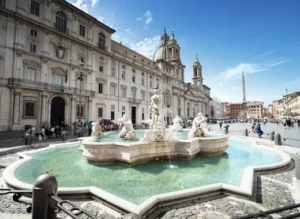 Comparência no aeroporto 120 minutos antes da partida. Formalidades de embarque e partida em avião da TAP Air Portugal com destino a Roma. Chegada e desembarque assistido pelo guia privativo de língua portuguesa que acompanha a viagem do aeroporto de chegada ao aeroporto de partida. Saída para visita da Roma “Barroca”, com guia local, passando pela Praça da República, via Vittorio Veneto, praça Barberini. Depois, passeio a pé pela Fonte de Trevi, a mais bela de Itália, pelo Panteão e pela Praça Navona dos pintores de rua e dos famosos gelados. Com a vista desde a ponte Umberto I sobre Castelo de Sto. Ângelo e da Basílica de São Pedro terminamos a visita desta bela cidade. Transporte ao hotel. Jantar e alojamento no hotel.