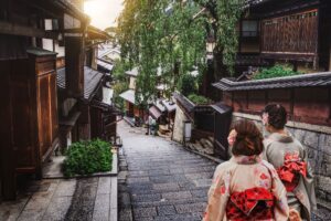 Cerimónia do chá tradicional, jantar com atuação de Maiko (aprendiz de gueixa), estadia em hotel com onsen (banhos termais) e contacto direto com tradições japonesas ancestrais.